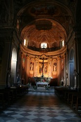 Die Pfarrkirche beherbergt auch ein wertvolles Triptychon aus dem Jahre 1503 des ligurischen Künstlers „Luca Baudo da Novara“ mit dem Titel „San Bartolomeo tra i Santi Giovanni Battista e Caterina“. Die meisten Gemälde der Kirche stammen von Giovanni Borgana. Die Deckengewölbe sind reichlich verziert und mit überdimensionalen religiösen Bildern geschmückt. Der schwarz/weiße Marmorboden ist noch original und entsprechend ausgetreten, was dem Kircheninneren einen weiteren Charme abverlangt.