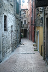 Die vielen kleinen, engen und alten „carruggi“ zwischen der Via Torino und dem Fluss Impero führen stromabwärts zur Via Agnesi. Hier befindet sich auch das kleine Museum „Museo Storico degli Spaghetti“, direkt an der Straße zur Via G. Garibaldi. Auf dieser Straße stehen auch die ältesten Gebäude von Pontedassio. Diesen Stadtteil nannte man früher auch „Sciangài“ – Shanghai. Auf den Wänden und Türen der Häuser befinden sich heute noch Spuren von Verzierungen aus dem 12. beziehungsweise 13. Jahrhundert „tracce di murature“ und „portali risalenti“.